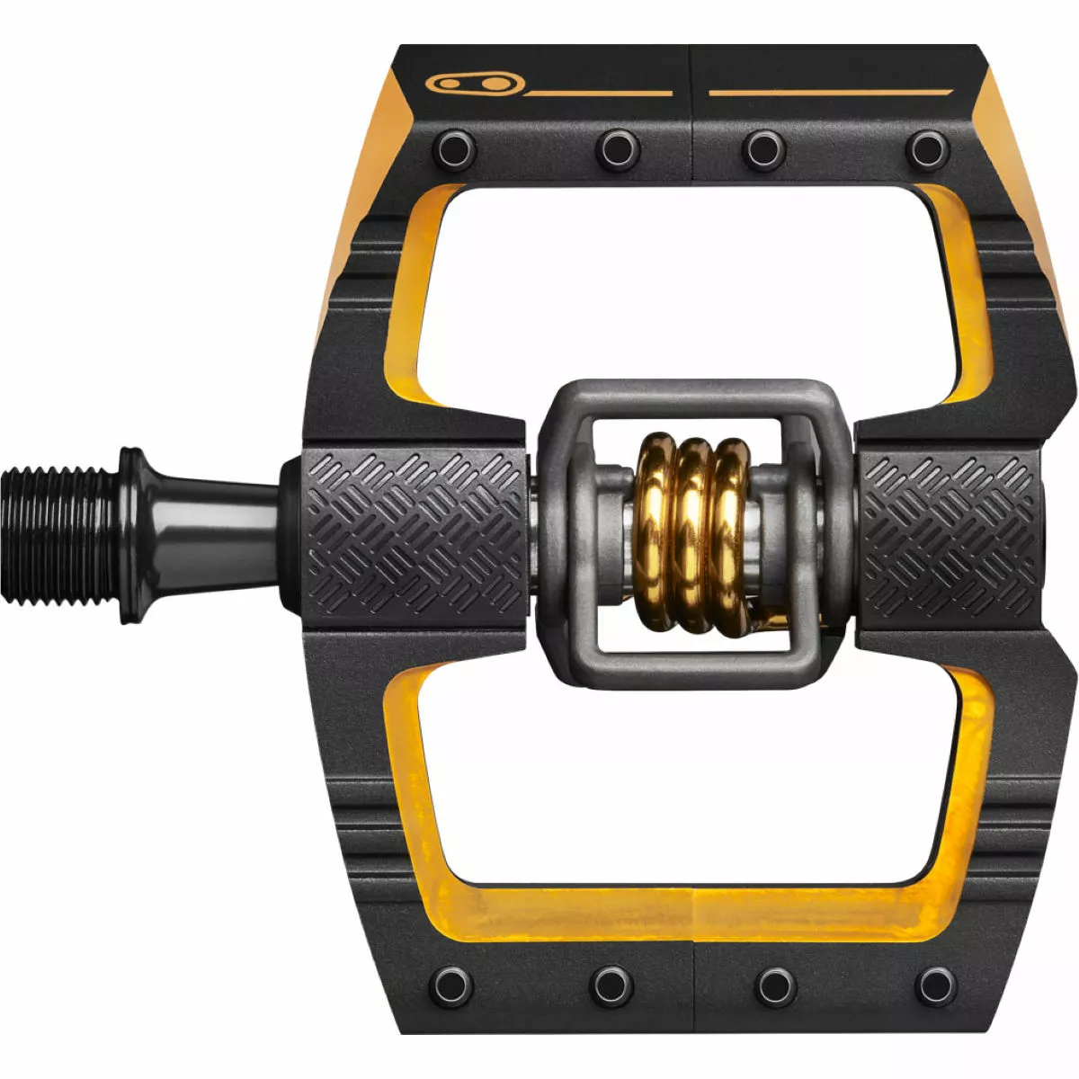 Spinning on a CrMo axle, a reliable and strong engagement to your cranks is assured, while the ribbed body section enhances traction for a better grip to your sole. Coming with brass cleats and shims, these hard-riding pedals come with eight optimally-placed pins, letting you ride with controlled aggression whether clipped in or not.