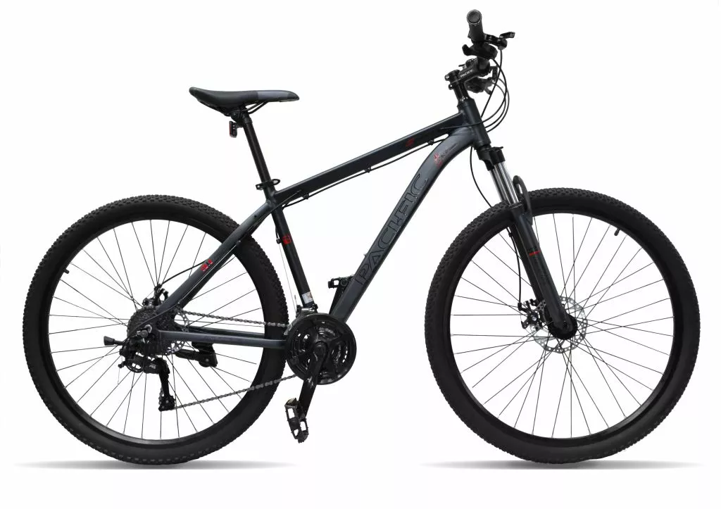 Pacific’s all-new aluminium hybrid bike is designed for recreational riders in mind. It’s reliable component mix and comfortable riding position make it perfect for general fitness rides or your daily commute. Smooth-rolling 29” wheels make it fun and easy to ride and cover a lot of ground. All-terrain tyres are perfect for riding on parkways, bike paths, rail trails, smooth dirt or gravel tracks. A 100mm travel suspension fork delivers a smooth ride over bumpy surfaces, and its lockout feature allows you to power up hills for maximum efficiency. Mechanical disc brakes ensure smooth stopping power – especially compared to V or linear pull brakes.