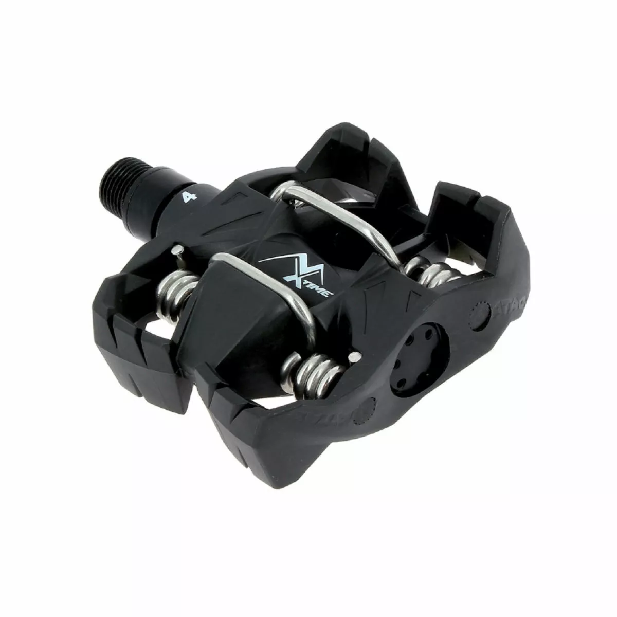 ATAC MX4 pedal, with an oversize steel axle and over size composite platform body provides an excellent strength to weight ratio .This pedal has also has self cleaning open arch springs that means it will not clog in any conditions.